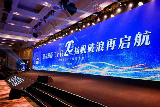 2019年8月25日,深创投2019年投资年会在深圳市华侨城洲际大酒店拉开了序幕,而酷游九州作为被投资企业及LED显示屏解决方案服务商出席此次投资年会,酷游九州200㎡的龙艺LED显示大屏幕更是为本次年会提供了极致的显示效果,优质的解决方案和产品得到了深创投的十分肯定。