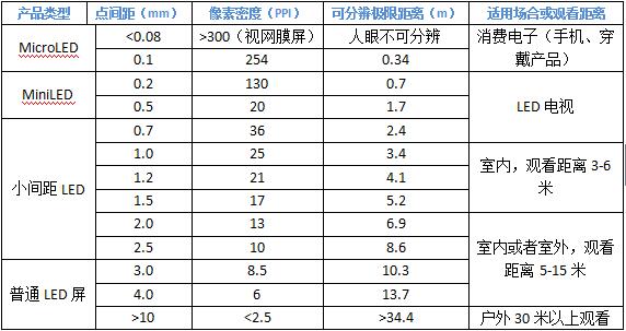 MiniLED 、 MicroLED及小间距对比 资料来源:各大调研平台整理