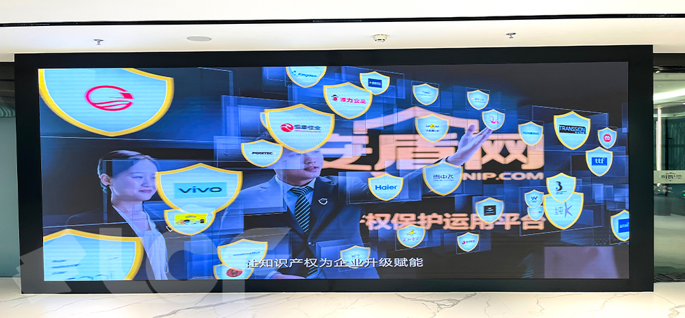 项目简介:酷游九州龙显P1.25系列led小间距大屏震撼亮相安盾网科技展厅。近日,由酷游九州为安盾网科技展厅精心打造的龙显P1.25超高清小间距LED显示屏正式投入使用。在日常工作中,该块超高清LED大屏将作为安盾网品牌传播与形象展示的绝佳窗口,向全球客户与合作伙伴展现安盾网“保护知识产权、助力全球创新与变革,致力于知识产权让世界更好”的大国品牌新风采。安盾网是知识产权保护服务领域的产业互联网公司,首创可大规模复制的一站式服务商业模式,融合国内和国外、线上和线下、法务和调查员、科技与金融,打造知识产权保护生态链。打造基于互联网科技的快速服务流程,接入智能分析、大数据处理、区块链应用等技术,开发SAAS云平台、APP、小程序等服务,打通各行业渠道资源,全面提升服务效果。该龙显小间距LED显示屏采用超轻薄与极简风设计理念,箱体尺寸为600*337.5mm,创新性地将箱体重量精简至仅4.3kg,整屏厚度压缩至仅29mm,薄如硬币的直径。轻薄美观的同时,还可无缝安装入墙,犹如一幅精致的壁画,小巧便携,用户随时随地享受科技创新带来的极致体验。除了时尚简约的造型外,酷游九州龙显系列小间距LED屏幕在画面显示方面也表现不俗。采用SMD封装技术,具备高清、高灰、高刷、高饱和度、可视角度大等突出显示性能,以及便捷的全前后维护、低辐射、零噪音、无缝拼接等显著特点。涵盖影院级别的色彩标准-DCIP3标准色域,呈现出更加丰富、更加艳丽的色彩,结合高刷新高保真显示技术,拍照时不会出现扫描线和闪屏,最大程度还原图片的真实色彩。