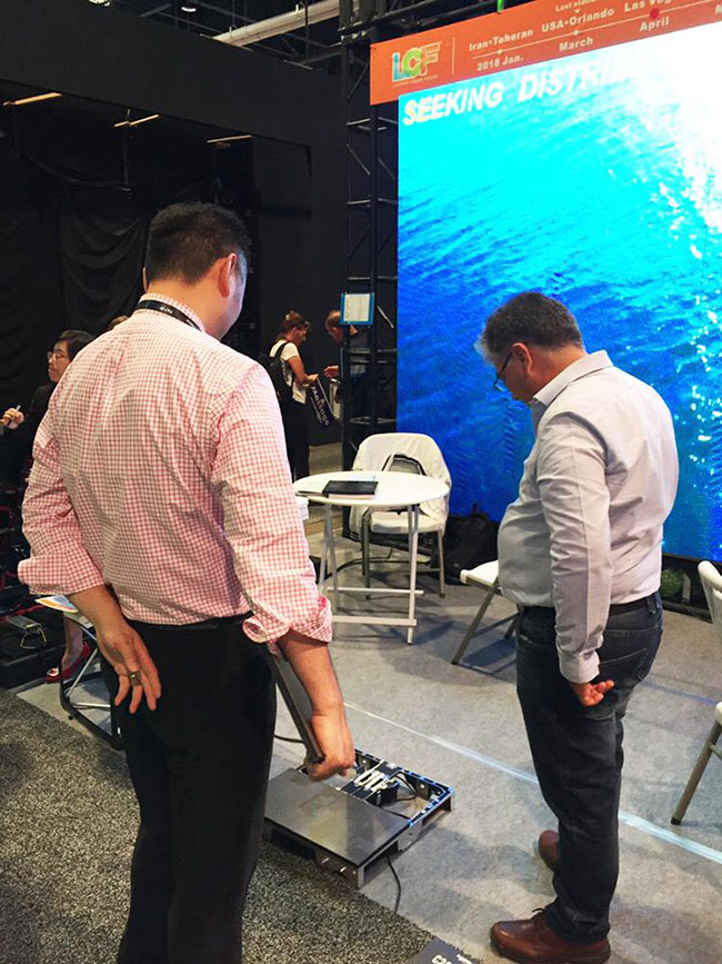 LED显示屏箱体,也是参展的主打产品。这款产品在商业显示上有卓越的优势:支持模组更换、快速拆装,并且支持显示画面任意角度旋转,支持户内、户外、地砖一体化应用。在现场,我们应客户要求对它进行了秒拆,完美的显示效果和非常简单的操作方式让很多来访者对它爱不释手。同时,户外P8前维护大屏,户外格栅屏P15.625,P16户外前翻盖大屏等大屏的展示,为顾客提供了更完善的选择空间,让来参观的客户大呼过瘾。