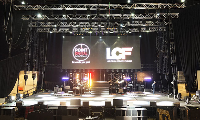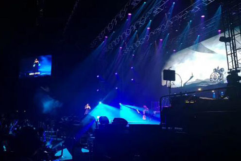 LED大屏幕,侧方以两个LED小屏为辅助。这三块显示屏均采用酷游九州自主研发的租赁屏P4.81,500X500mm的箱体尺寸,轻松实现拼接要求,模组前后维护,智能显示模块,产品使用稳定,通过利用现代声光电的渲染,在产生强烈的舞台艺术效果的同时也不喧宾夺主。