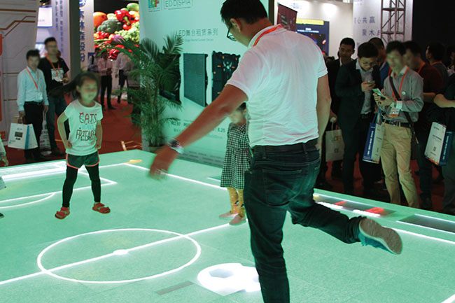 酷游九州P4.81互动地砖屏防刮、防撞、防磕,高耐压、高承重,每平米承重可达1.5T。安装方便,支持徒手安装或导轨安装。届时,舞台即视感、零距离接触感将在地砖屏中一同展现,观众也能直接加入到互动比赛中来,感受互动大屏的创新玩法。
